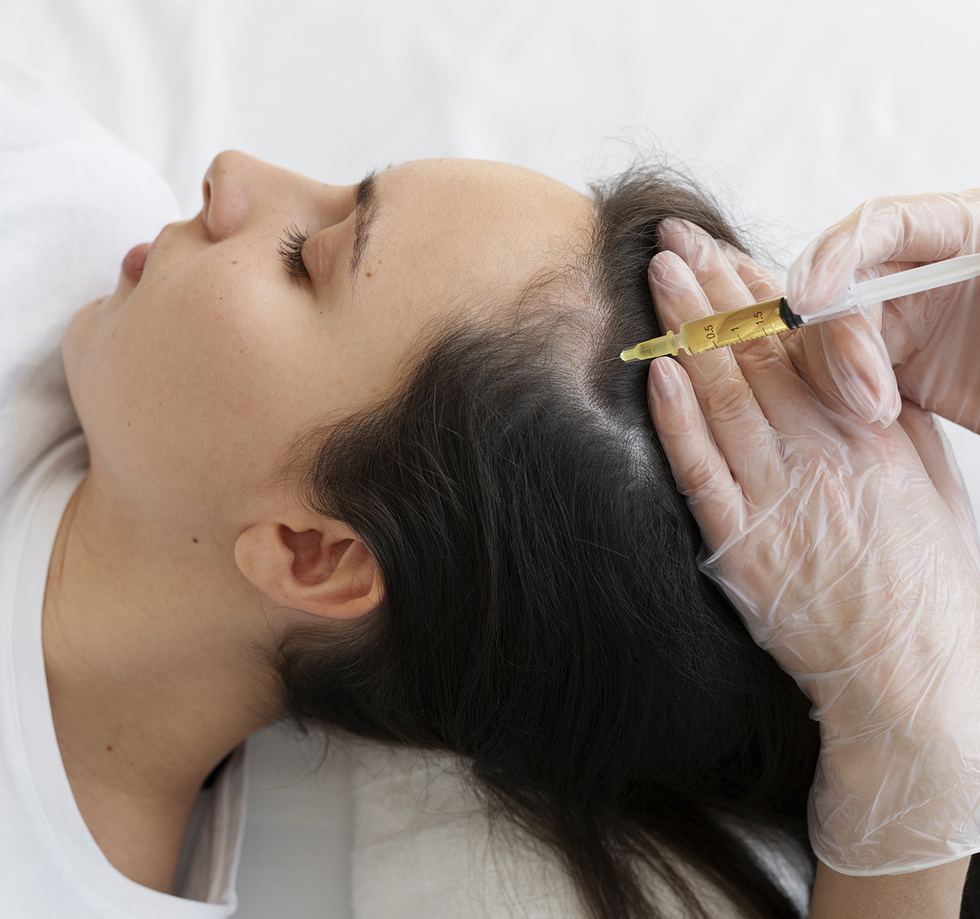 Hair Mesotherapy involves injecting a customized blend of vitamins, minerals, amino acids, and other nutrients directly into the scalp. This non-invasive treatment targets the hair follicles to improve their health and stimulate hair growth. Hair Mesotherapy helps to nourish and strengthen the scalp, improve blood circulation, and address issues like hair thinning and premature hair loss. The result is healthier, fuller hair and a revitalized scalp, making it a popular choice for those looking to enhance hair density and overall hair quality.